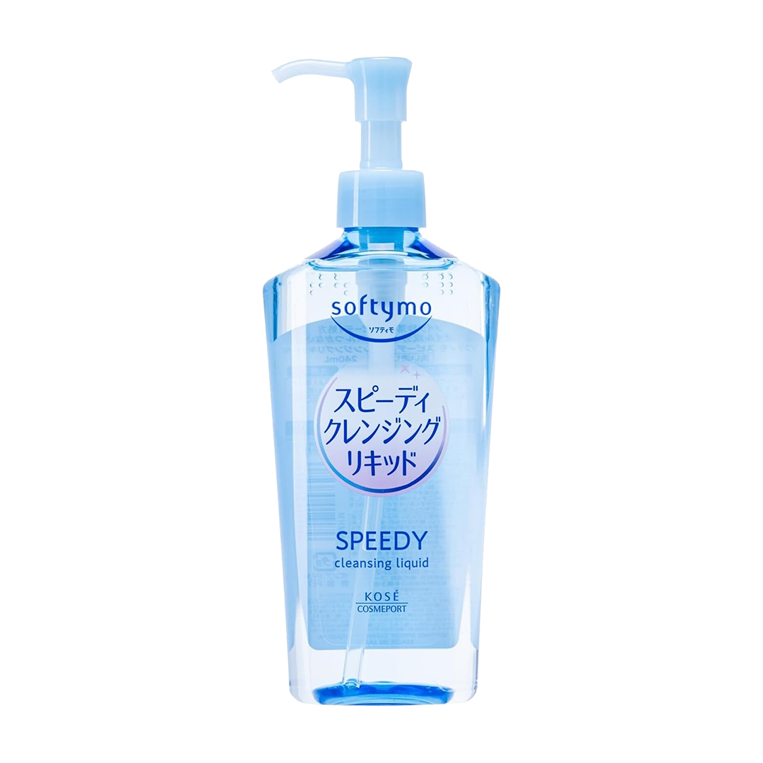 Kosé Cosmeport Softymo Speedy Cleansing Liquid is a makeup remover designed for quick and effortless cleansing. Its lightweight, oil-free formula glides smoothly over the skin, dissolving foundation, waterproof makeup, and daily impurities without leaving behind a greasy film. Enriched with five certified organic botanical extracts, it helps maintain the skin’s natural moisture while delivering a clean, comfortable finish.
